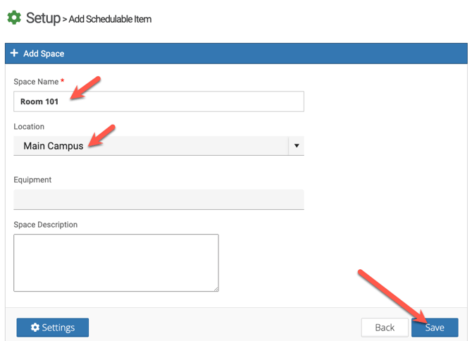 Once you add the new space on the work order side of eSPACE, it will be added on the Event Scheduler side (if you are a bundled client). However, the space cannot be scheduled on the Event Scheduler side unless an Event Scheduler Admin edits the space within Settings > Basic > Spaces, allowing it to be scheduled.