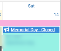Here is an example for a closure, due to a Holiday, that is represented on my internal and public calendars.