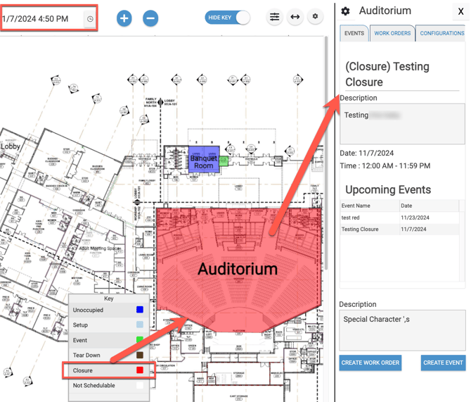 Once a closure is put in place, then regular users and sub-admins will NOT be able to submit the event for approval if they have items selected that are affected by a closure.