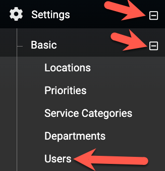 To manage or add users go to Settings > Basic > Users.
