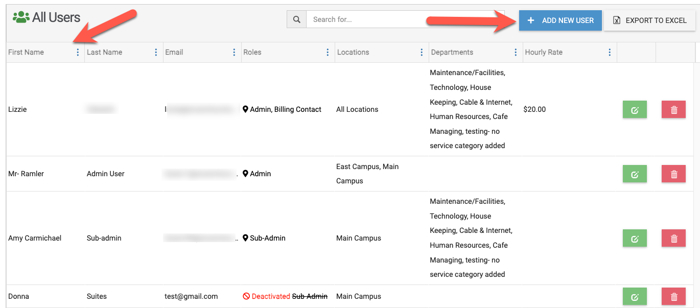 - Access to Settings: All admins will have access to all the settings in the organization's account including adding and managing locations, users, service categories, departments, spaces, equipment and more.