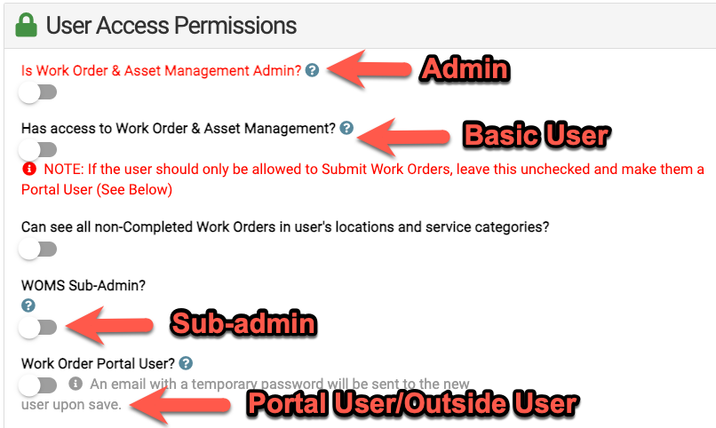 - Learn more here: Giving Someone Limited Access to Work Order & Asset Management | Portal Users