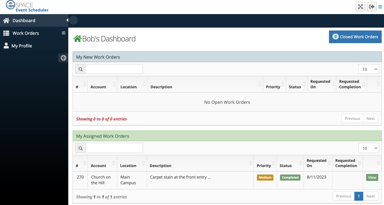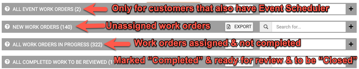 - For bundled customers only, a sub-admin with access to manage work order will also see the "All Event Work Orders" grid.