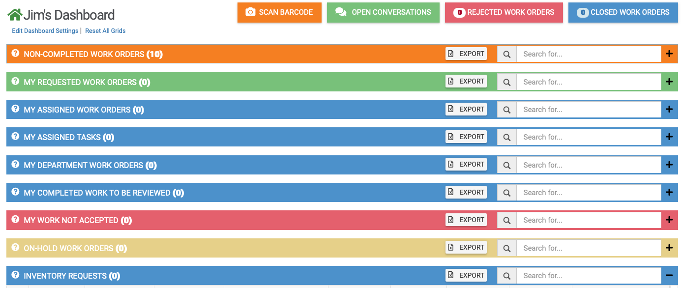 - Admins also have extra grids on their dashboards, see below.