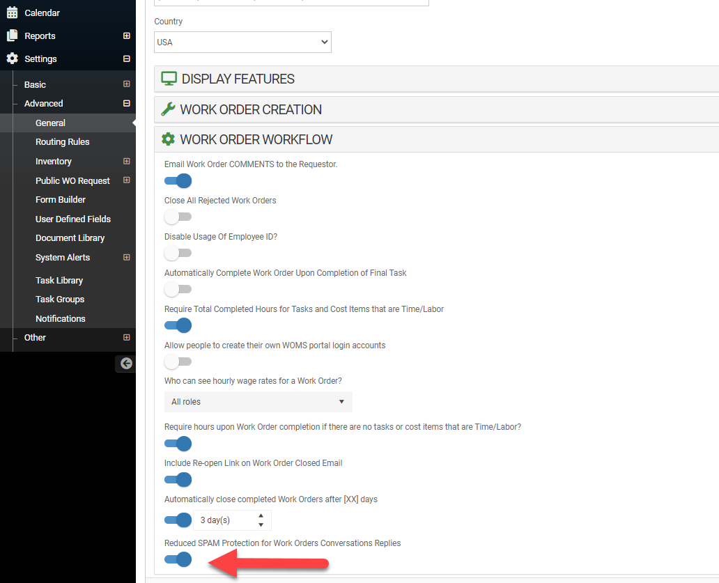 Go to the left navigation bar>Settings>Advanced>General>Work Order Workflow