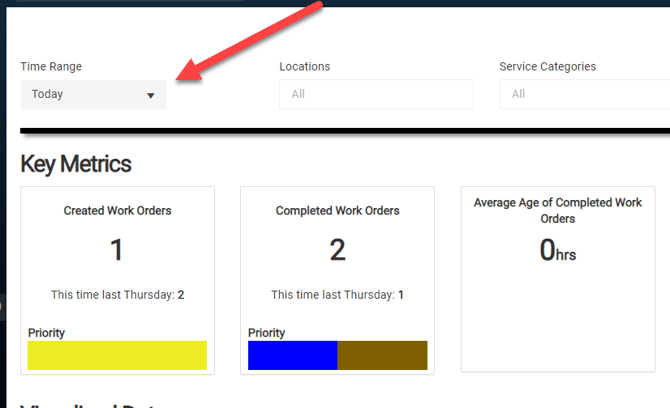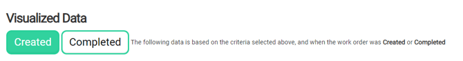 Another delineator is under Visualized Data, and allows you to analyze Created or Completed Work Orders based on the selected Time Range