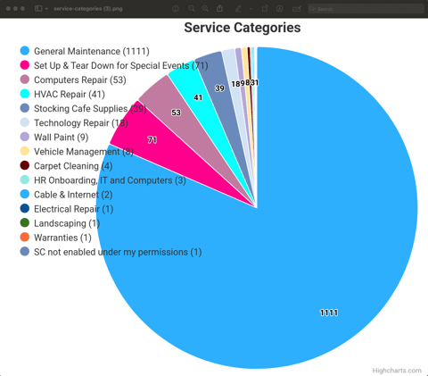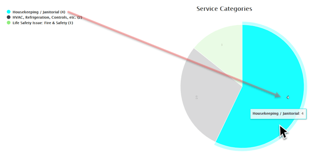 If you hover over with your mouse on a slice of the pie chart, the Service Category appears with the number of Work Orders for the selected Time Range