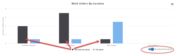 Then, you can compare that with (B) the number of Work Orders created at the same time last week.