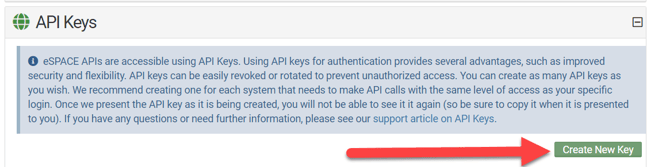 - Once you have read the information on our API Keys, you can choose to Create New Key: