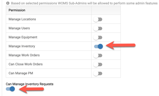 - Then, underneath the Permissions grid a new item will appear that says Can Manage Inventory Requests, and check the box