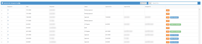 All Inventory Requests appear in the left Navigation Bar as