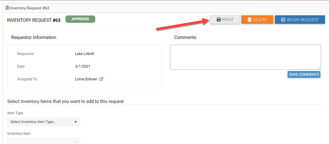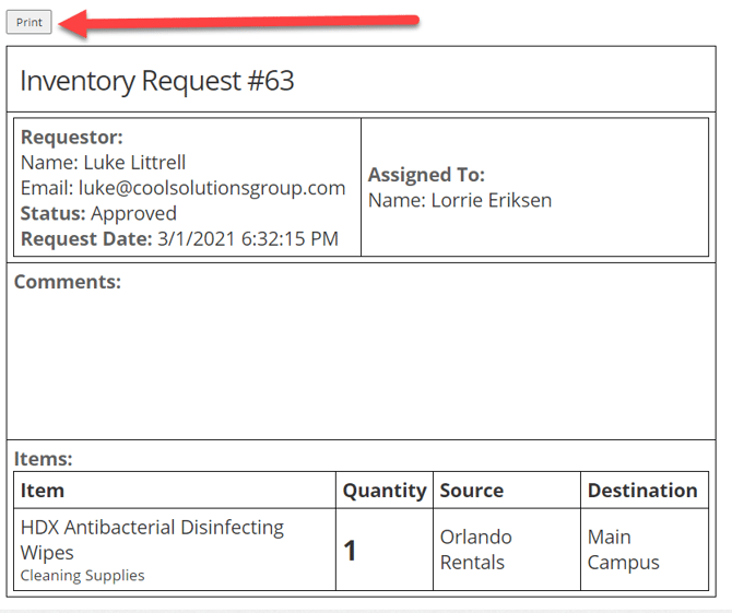 You can also Print your Inventory Request.
