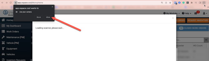 Once you click Scan Barcode, your computer's camera will attempt to open and if for the first time you will need to choose to Allow