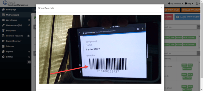 For those that are on an eSPACE subscription tier which includes Asset Pro, you will see an option to Scan Barcode on your Dashboard both on the desktop view and mobile app view.