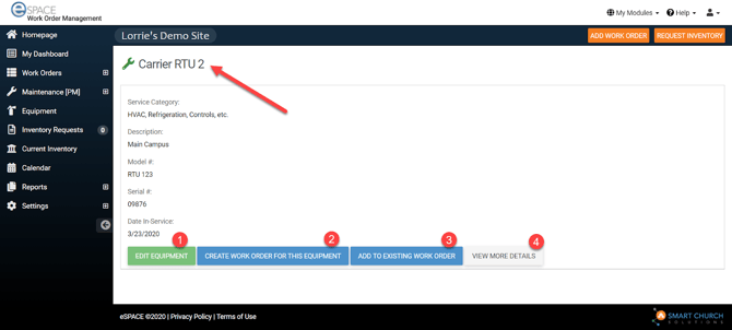 - Create a Work Order from this Equipment
