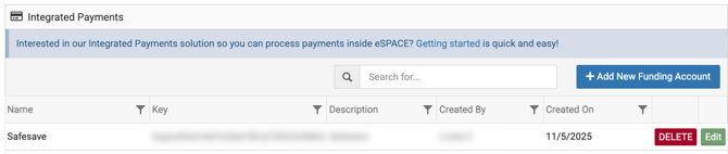 - Under Billing & Invoicing > Settings > Funding Account is where you can set up a SafeSave account so you can process transactions in eSPACE. To do this you will need to set up an account with SafeSave, a third-party companies where all transactions take place.