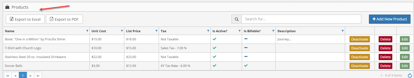 Under Billing & Invoicing > Settings > Products is where you can add products that can be purchased such as books, t-shirts, CD's, etc.