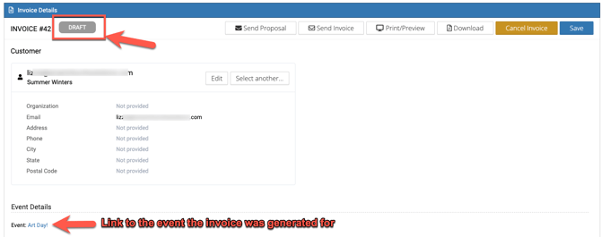 • Notice the DRAFT status badge to the right of the invoice number!