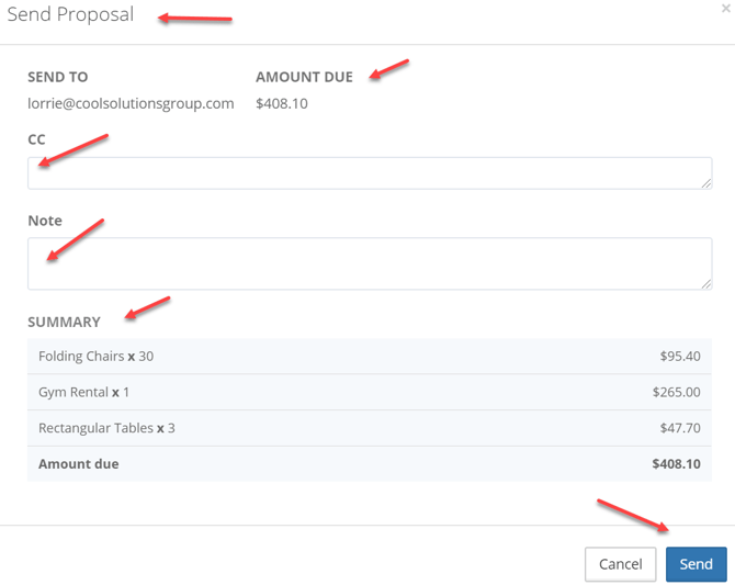 When finished filling out all the information for the proposal, select Send to send the Proposal.