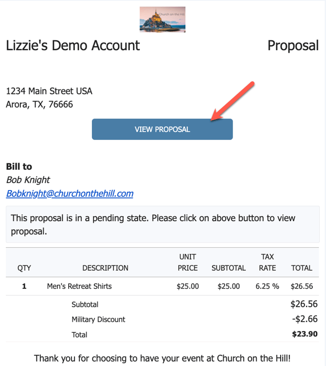 • When the recipient receives the proposal, they can click "VIEW PROPOSAL" as shown above, to then either ACCEPT or DECLINE
