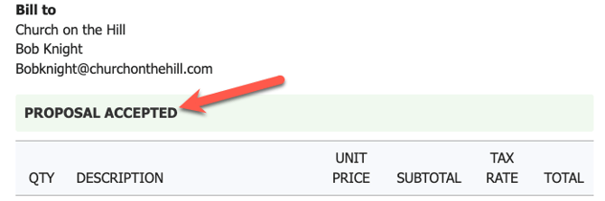 When the invoice is sent, the recipient will get an email with the details of the proposal and a link to accept or decline the proposal.