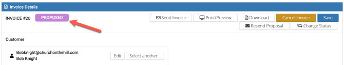 • Notice here that you can also manually change the status of an invoice, print/preview, download, cancel and resend the proposal.