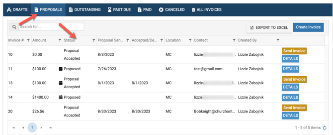 If you go back to to Billing & Invoicing > Invoices, you will find the proposal listed under the Proposals tab and will be able to see when the proposal has been accepted or declined here.