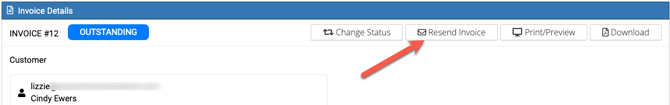 • Once an invoice has been sent, but has not yet been paid, the Send Invoice button becomes a Resend Invoice button, and by clicking it the same process for sending an invoice follows.