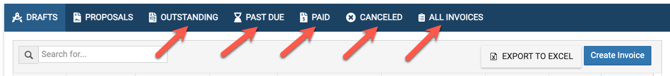 • Each tab represents the status of the invoice and each tab has different fields within, applicable to the status.