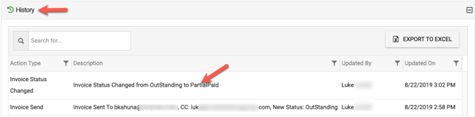 You will also see that update recorded in the History tab of the invoice.