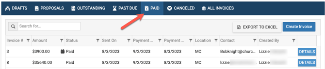 Once the invoice has been paid, it will show within the PAID tab.