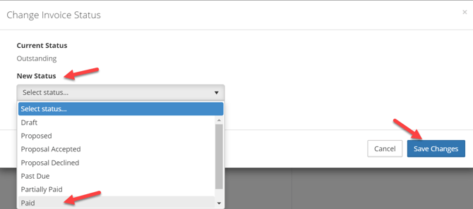 • ...select Paid from the New Status drop-down menu and Save Changes.