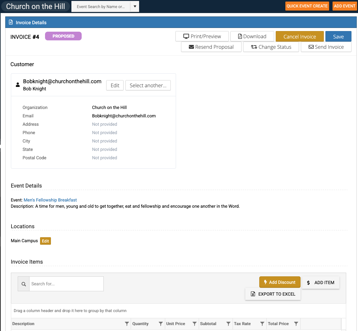 Once the invoice is created, there are several ways that you can modify or customize the invoice before sending the proposal.
