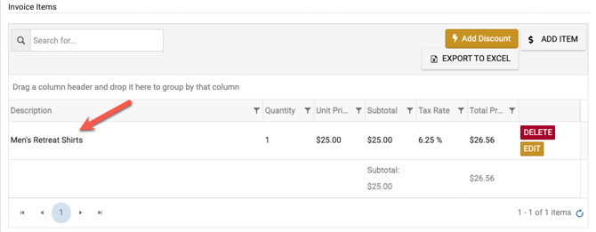 - You can search, edit or delete an item, apply a discount, and export the item list to Excel.