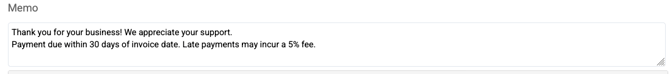 If you've already added memo notes within Invoice Settings, they will automatically be populated here. You can delete the current memo and add another memo of your choice!