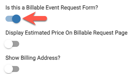 Then, they can go to Settings/Advanced/Event Request Form, admins can create an Event Request form and choose for it to be billable.