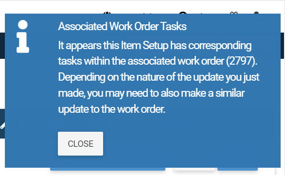 If you make a change to the Configuration or the Setup Note for an Item, you will see the following warning: