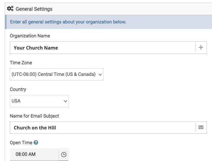 If at any point in time, if the name of your organization (church or school etc...) changes, an admin can update your organization's name in your eSPACE under Settings > Advanced > Basic under "Organization Name".