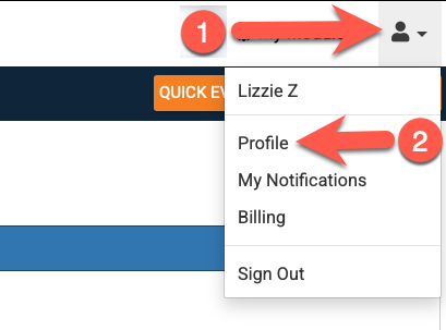 If you also need to change the email address associated with your eSPACE account then log into your account, click on your profile icon at the top right side and choose Profile from the drop-down menu.