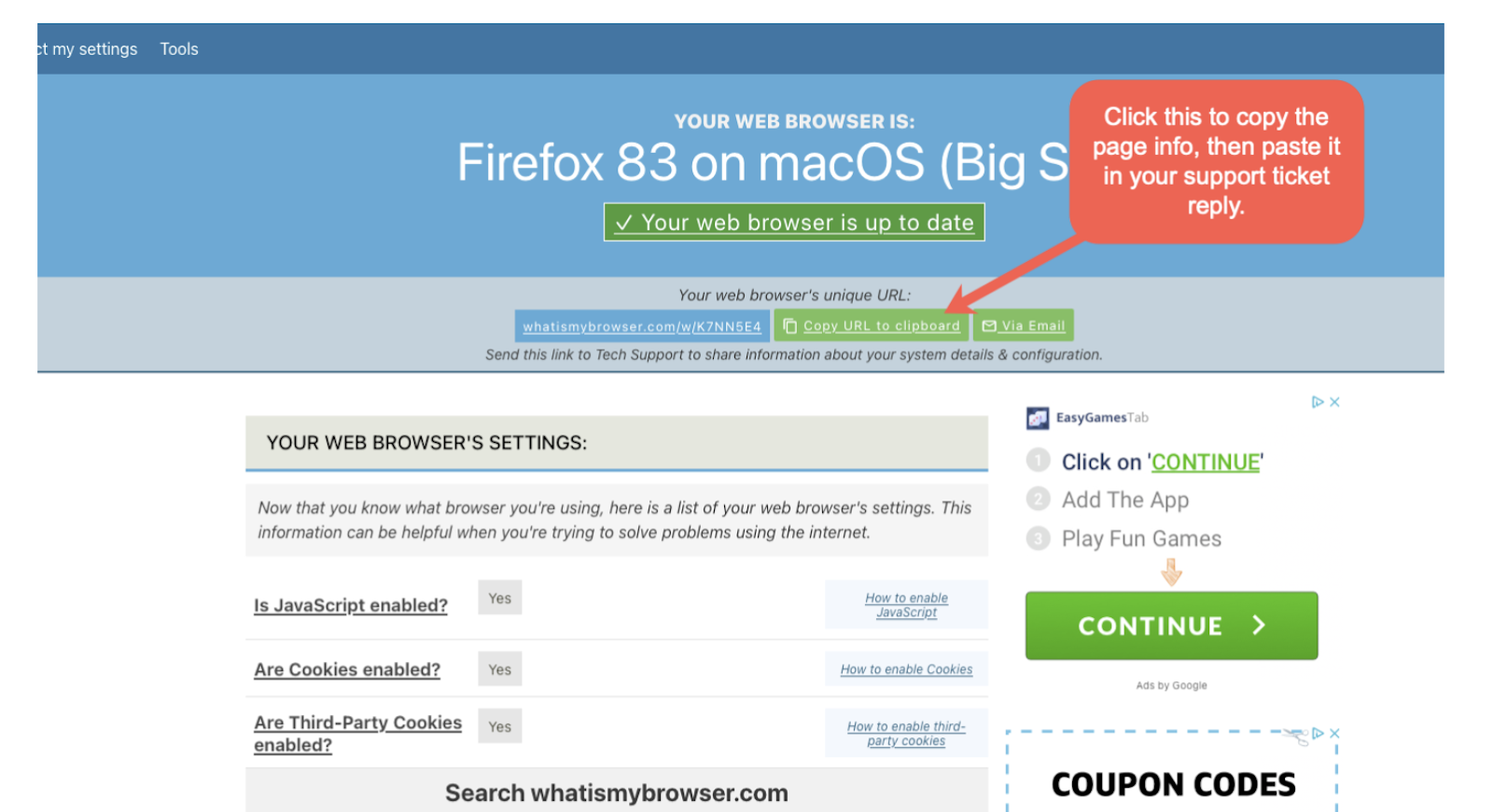 If someone from our support team has requested this information, be sure to click the green "Copy URL to clipboard" and then paste it within the support ticket reply.