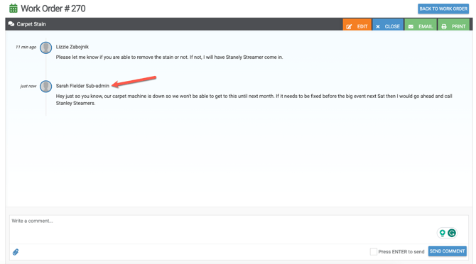 A. Any work order with a new comment on it that you have not yet read will have a conversation icon on it. You will be able to see this while viewing the work orders on your dashboard.
