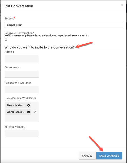 - Invite others to the conversation! Just click within the desired box(es) to select others that you want to invite to the conversation.