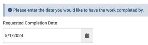 9. If an admin has not hidden the Requested Completion Date field, then enter a date.