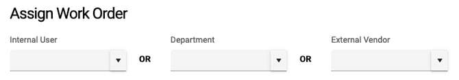 - Keep in mind that admins and sub-admins who manage work orders will also have the three fields at the bottom where they can also assign the work order to a user, department, or external users, however, this will be limited based on the department they enter in this department field.