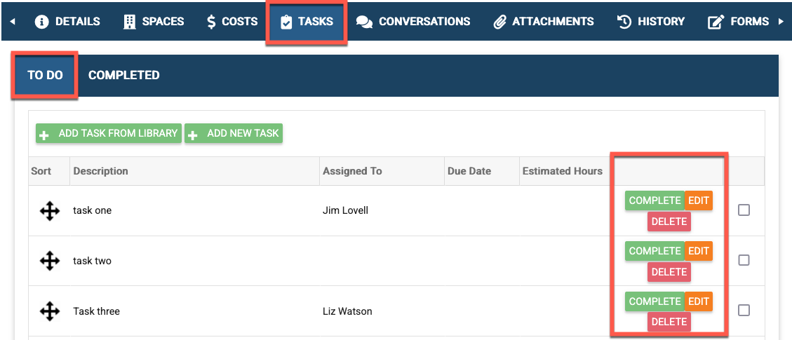 Once a task is complete, they can mark it as Complete on the Task tab.