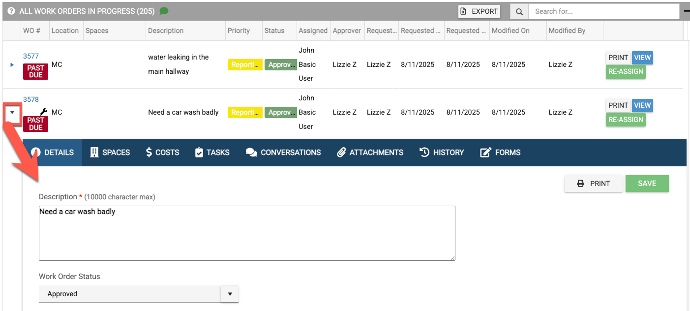 You can also expand each work order to see all of the tabs associated.