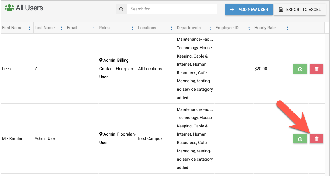 - Regardless if the user has work orders assigned to them, the admin must choose someone as a replacement in order to be able to delete the user.