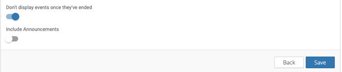 14. At the bottom of the display features you have choose to to display events once they have ended or include announcements (which is a different display type that you must create in INFOSPACE).