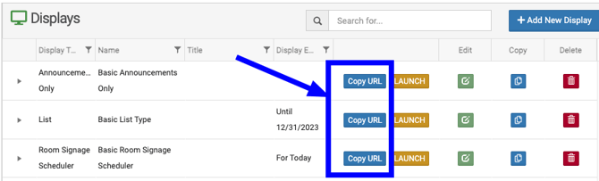 15. After you are finished setting it up, click Save and the eSPACE will generate a URL for you to use for your TV, tablets, iPad.. So that it can display the display types with the events that you just designed.