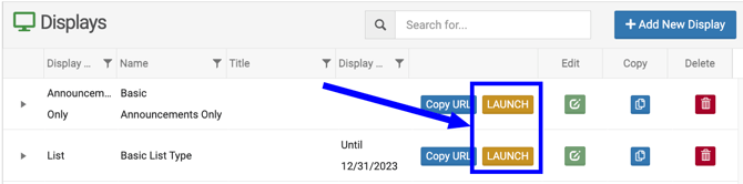 16. To preview your newly created display, click “LAUNCH”. It will then open a new screen so you can preview the display. Press F11 to go into FULL SCREEN MODE.